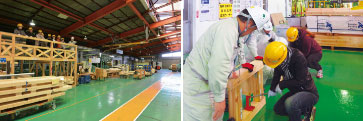 ■ 木材加工工場での木材プレカットや、造作材の生産が始まりました。希望をして、作業の様子も見学しました。