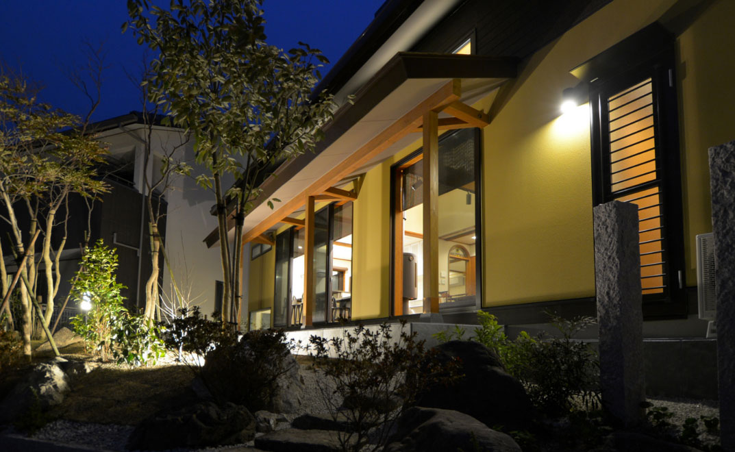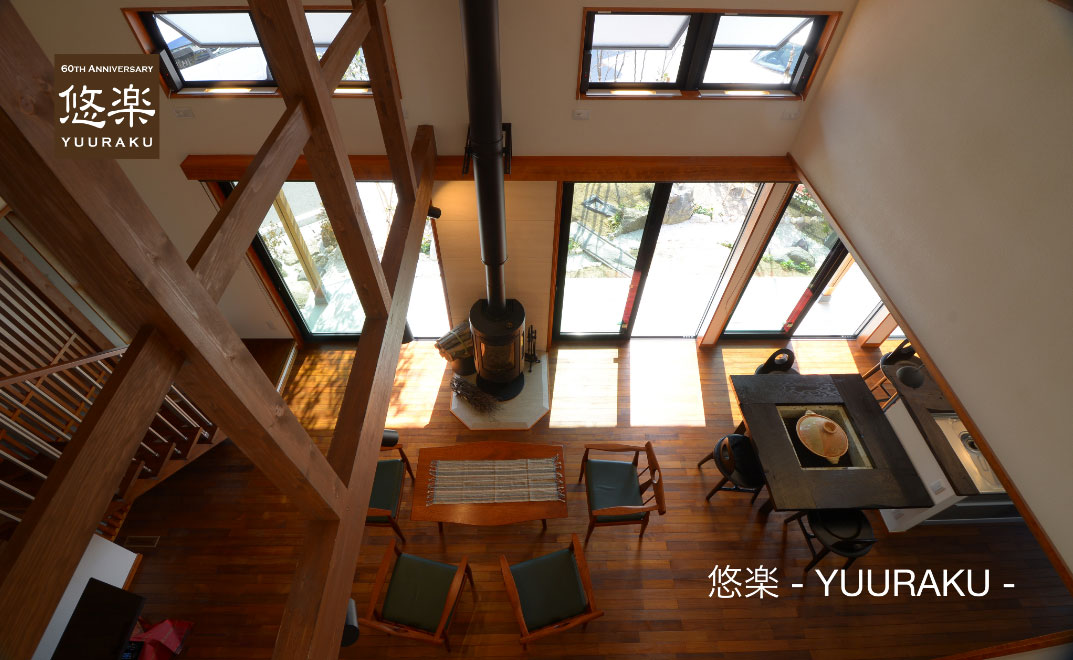 家は家族の文化をつくる場所です。暮らすことを楽しめる場所でなくてはならないのです。家族の距離が近く、いつも会話ができる環境があり、美しく生けられた花や絵、庭の木々が更に美しく見える場所がある、そして、良き人が惹きつけられて悠に縁が広がり友人やお客様が訪れやすく、お招きしたくなるような雰囲気を家が醸し出す。まさに招福万来、悠に楽しむ事ができる家が「悠楽」です。