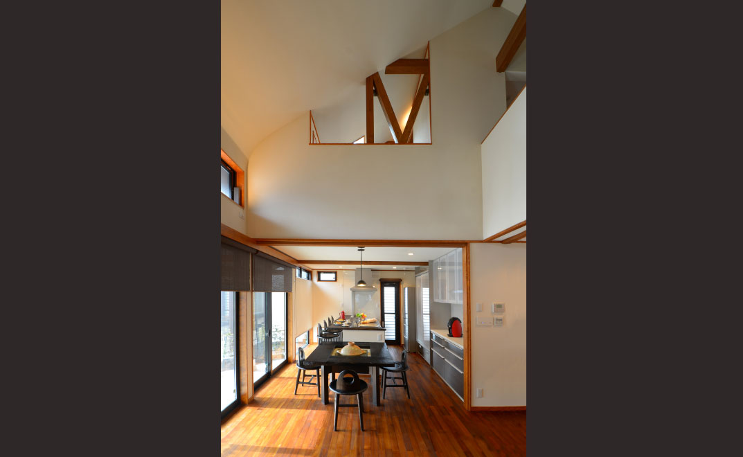 外観は日本の伝統を継承した形でありながらモダンであり、内装は厳選した無垢の木を使い、自然の風の涼しさ、陽の光の温もりを実感できるような古き良き地窓や天窓を再現することにより自然な快適性を追求し、構造強度も確保したスマートスケルトンを採用いたしました。電気製品に頼ることなく自然の力を利用したエコがストレスから人を解放し、快適で本当に心豊かな暮らしを得る方法だと考えております。