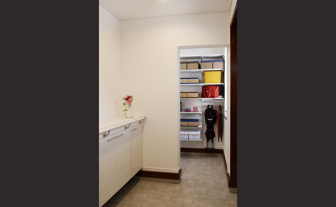 規則正しい習慣を身につけさせるには、子どもたちの成長・変化・時期に合った収納計画と、効率よく子どもたちを導く動線が必要です。生活習慣と学習習慣に必要な「いつ・どこで・何を」を想定し、できる限り短い距離で効率よく行動させるための「子ども導線」を収納計画とともに考えました。