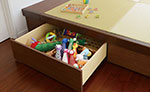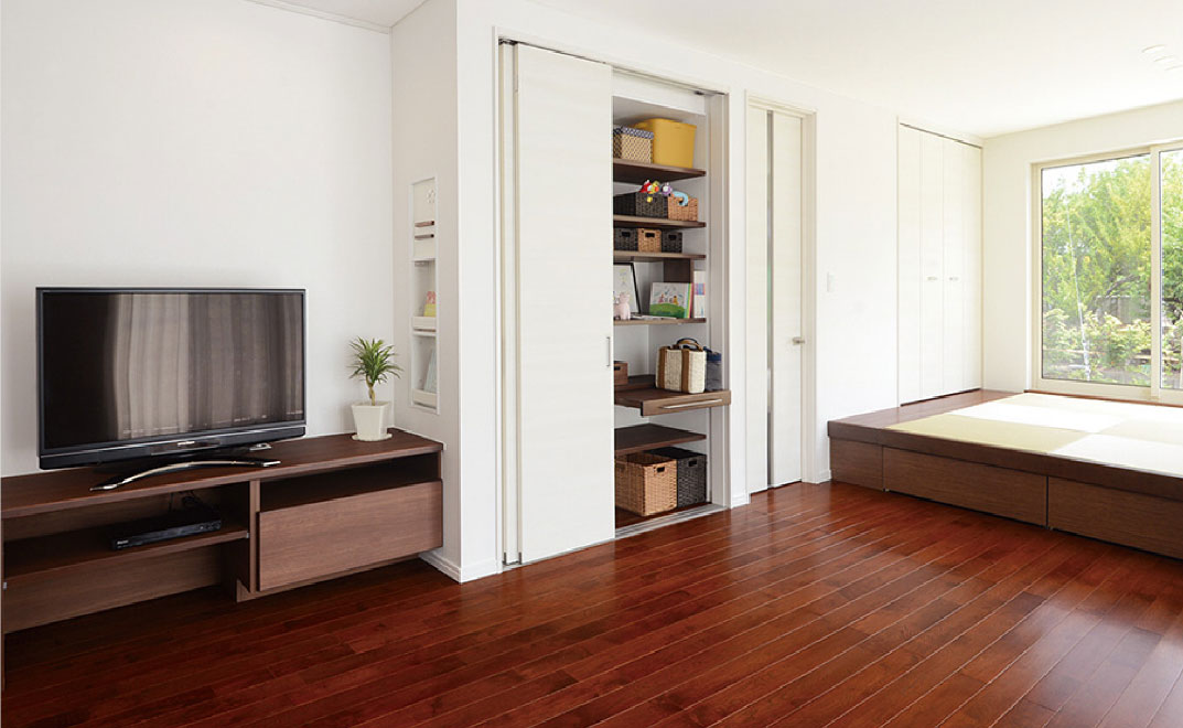 例えば、「片付けしなさい」などと親が言い聞かせるのではなく、子どもが自分から「片付けしたよ!」と「自分でできる」を伸ばす工夫を、住まいの中に取り入れました。