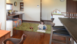 仕切りが少なくゆったりした室内空間が広がる家で、お子さま達