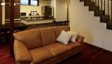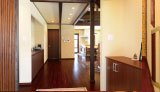 に広がりのある室内空間と、木の温もりを感じる色合いに惚れた