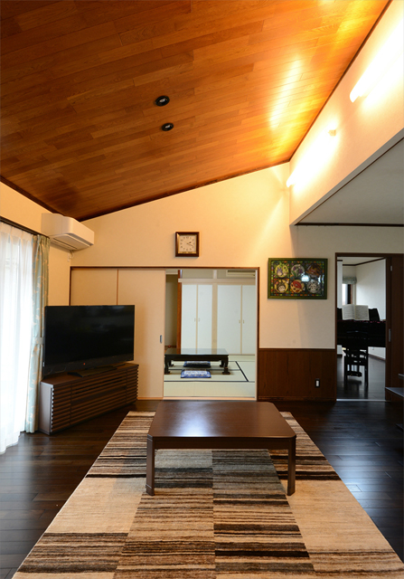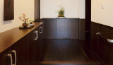 I様邸は、落ち着きのある和の雰囲気を大切にした平屋建て住宅で、回遊できる間取りは、ひとつひとつの空間がゆったりしています。玄関ホール先の坪庭は、まるで旅館を訪れたように、こころを癒す雰囲気を醸し出しています。美しく整ったお庭には、お住まいいただいてからも、槙の木やクロチクを増やし、メダカの水槽を設置されたり、I様らしいお庭づくりを楽しんでいらっしゃいます。四季の移ろいを楽しめる和庭が、ご夫婦の手によって、これからも豊かに成長していくことを楽しみにしております。