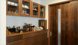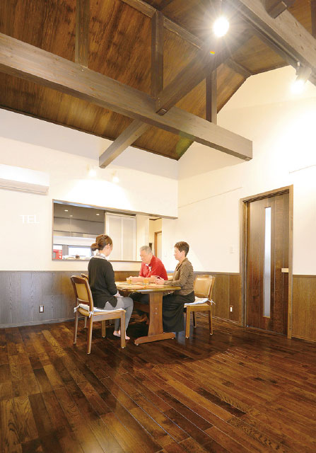 職場がある愛知県から、実家近くである大垣に移住されたI様は、ご主人と奥様とのふたり暮らしです。電車通勤のため、駅の近くに新居を構えられました。「大垣駅は始発の電車も多く、職場まで乗り換えなく行けるので便利ですよ。家の周りは静かで、住み良い環境です」とご主人。共働きで時間に追われる日々の中で、家に戻り、庭を眺めてやすらぐ時間と、食事やお酒を楽しむ時間を大切にされています。お酒が好きなご主人は、お気に入りのぐい呑みを片手に、ライトアップした夜の庭を眺めながら一献。1日の疲れがほぐれる、心地よい時間。