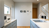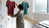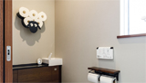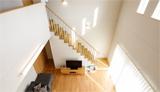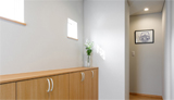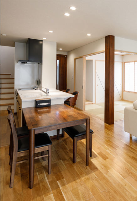 「建てるならLDKは開放的な空間にしようと思っていました」。そう話すH様邸のLDKは吹抜けもあり、とても開放的。キッチンに立っても全体が見渡せる。吹抜けにある窓から日差しがたっぷりと入り、開放的な空間にすることを重視したLDKは約25帖。リビング階段の壁も手摺りタイプにし、キッチンからの見晴らしの良さを叶えるために壁を減らしながらも、耐震等級3が取得できる耐震性も実現している。日差しや風を巧みに利用し、心地よい住空間を作るパッシブデザインと吹付断熱による高い気密断熱性に加え、H様邸では第一種換気も採用。「夏は涼しいですし、冬も暖かいと感じますね。実家と比較するとよくわかります」と、居心地の良さはさらに高まったとのこと。