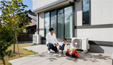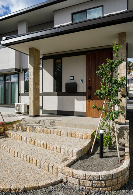 木と石と土がテーマのクラシカルで洋風モダンな佇まいが特徴的な欧(おう)シリーズ。そのモデルハウスに一目惚れしていただいたことが、弊社との家づくりを決めた理由だと話すH様。ボーダーのあるクラシカルな外観デザインは、欧の大きな特徴の一つ。重厚感や高級感を感じる佇まいは、シンプルモダンな家を建てたいと思っていたH様を変えてしまったほど。