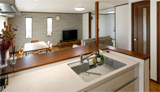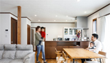 「リビングが広くなったので子どもがのびのびしています。無垢の床は子どもにとっても安心ですね。自然素材ならではの木目にどこかかわいらしさも感じます」。 H様が間取りを考える上では、家相が絶対にはずせなかったポイント。生活するための動線とは相反するところもある中で、両立させるために担当者が知恵を絞った。「大変だったと思いますが、室内干しができる部屋もできましたし、収納もたっぷり造ってくれましたので、いざというときに押し込めて便利です」と奥様。