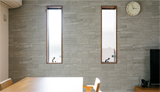 欧のデザインコンセプトに合わせて、LDKの壁一面は石目調のエコカラットで仕上げ、キッチン前収納の扉は框のあるデザインに。手元が隠れる高さのため、キッチン内部が見えず、生活感も感じにくくなった。